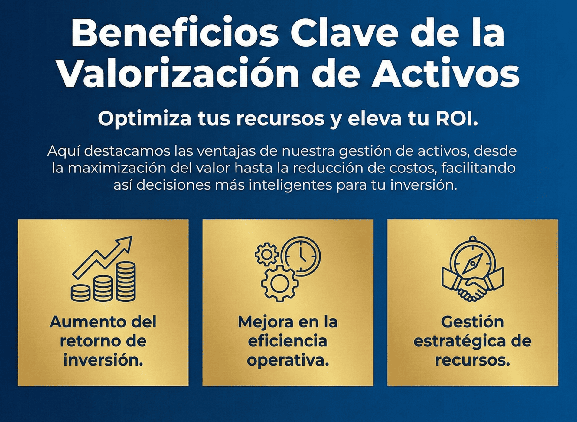 Optimiza tus recursos y eleva tu ROI. Aquí destacamos las ventajas de nuestra gestión de activos, desde la maximización del valor hasta la reducción de costos, facilitando así decisiones más inteligentes para tu inversión.